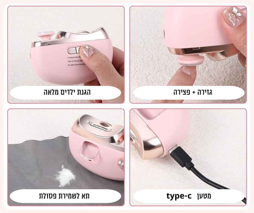 יש לי ילדה בת חמש שתמיד פחדה שאני אגזור לה את הציפורניים כי זה היה מכאיב לה ומאז שקניתי את המכשיר הזה היא כבר גוזרת ציפורניים לבד זה ממש בטיחותי ועושה את כל העבודה לבד חוסך לי מלא זמן ובכיות איתה.